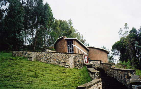 When we got down to the first building at the bottom there was a man walking up the steps toward us. He explained to Oliver, in Kinyarwanda, that he was one of the few survivors of this Bisesero hill where he had lost all his family. I don't know his name but after getting home I found a story and wondered if that had been him - he had looked very much alike. See Rwandan Courage & Survival.