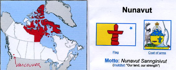 Nunavut (from Inuktitut) is the largest and newest federal territory of Canada; it was separated officially from the Northwest Territories on April 1, 1999, via the Nunavut Act and the Nunavut Land Claims Agreement Act, though the actual boundaries had been established in 1993. The creation of Nunavut -- meaning "our land" in Inuktitut -- resulted in the first major change to Canada's map since the incorporation of the new province of Newfoundland in 1949. Nunavut comprises a major portion of Northern Canada, and most of the Canadian Arctic Archipelago, making it the fifth-largest country subdivision in the world. The capital Iqaluit (formerly "Frobisher Bay") on Baffin Island, in the east, was chosen by the 1995 capital plebiscite. Other major communities include the regional centres of Rankin Inlet and Cambridge Bay. Nunavut also includes Ellesmere Island to the north, as well as the eastern and southern portions of Victoria Island in the west and Akimiski Island in James Bay to the far south. Nunavut is both the least populous and the largest in geography of the provinces and territories of Canada. It has a population of 29,474, mostly Inuit, spread over an area the size of Western Europe. Nunavut is also home to the northernmost permanently inhabited place in the world, Alert... The territory has an annual budget of C$700 million, provided almost entirely by the federal government. Former Prime Minister Paul Martin designated support for Northern Canada as one of his priorities for 2004, with an extra $500 million to be divided among the three territories.... Wikipedia
