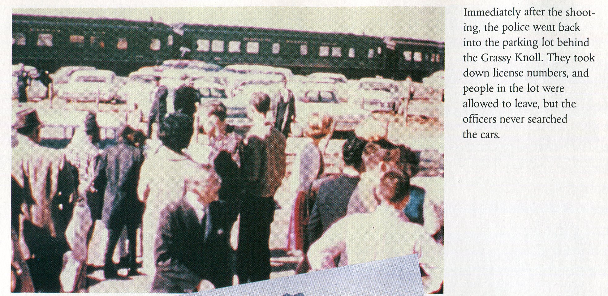 Afterwards, a large number of people came, from more than one direction. One group converged from the corner of Elm and Houston, and came down the extension of Elm and came into the high ground, and another large group went across the triangular area between Houston and Elm and then across Elm and then up the incline. Some of them all the way up. Many of them did, as well as, of course, between 50 and a hundred policemen within a maximum of 5 minutes -- in this area around my tower.... They sealed off the area, and I held off the trains until they could be examined, and there was some transients taken on at least one train....