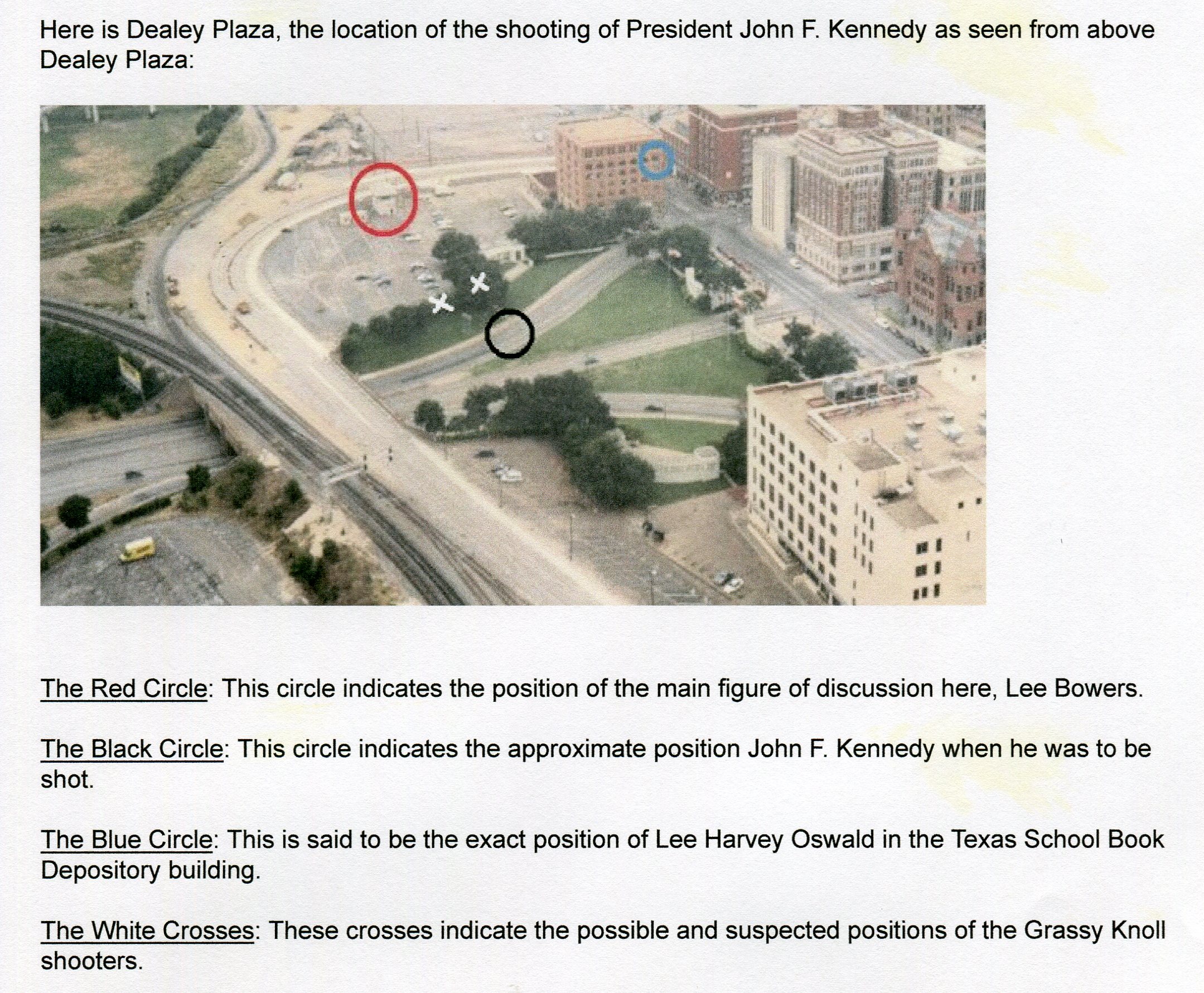 Bowers heard the shots -- they came from direction of the Texas School Book Depository building and from down near the Triple Underpass. His eyes were immediately drawn to the two men behind the picket fence -- and from there he saw movement and puffs of smoke. All hell broke loose as hundreds of people stormed the Grassy Knoll to get behind the picket fence into the parking lot and railroad yard from whence they'd heard the shots.