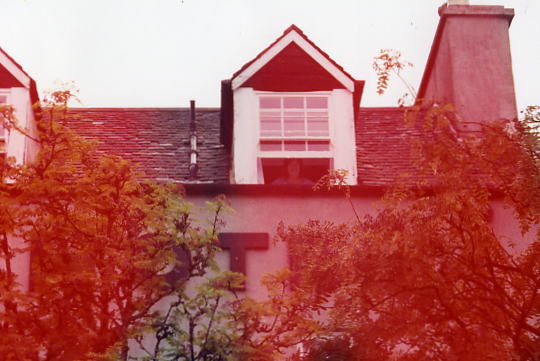 After unpacking we drove the thirty miles up the island as far as the manor house at Ardlussa to get the lay of the land for our trip to Barnhill the next day. When we got back to the hotel I shopped at the souvenir display in the lobby and bought postcards and a hand-knit wool toque (prounounced 'tuke') which is Canada's word for a hat. It fit perfectly and would match my black wool winter coat. I'll forever call it my "Jura Hat". We had dinner in the bar-room next to the pub. I ordered Jura venison and pursuaded my husband to eat something with haggis in it so I could have a taste. I remembered Orwell's description of it: