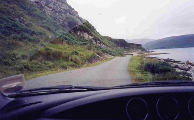 Our ferry was leaving shortly after 10AM to take us to Islay in time to catch the 12 o'clock ferry back to the mainland. In the time we had to wait we took a drive on Islay and on our way back took pictures from the top of the hill where the road starts corkscrewing down: