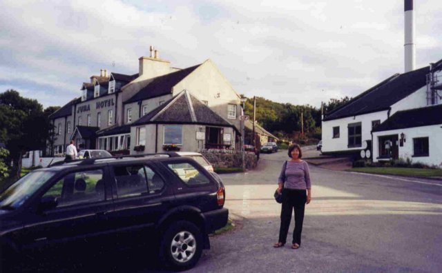 Going down a hill and then around a sharp bend the heart of Craighouse suddenly appears. That's me standing at the bottom of the hill with the Jura Hotel on my right and the Jura Distillery on my left.
