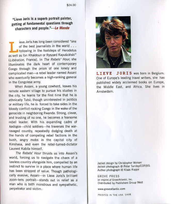 Through Assani I was able to desribe this reality. He went to war to defend his people, killed and saw friends killed. Somewhere along the line he lost sight of how it had all started and where it was all leading. Peace negotiations brought him to the capital, but as long as the problems in his native region remain unresolved, the thread that connects him to his country will be extremely fragile....[end of preface to The Rebels' Hour, by Lieve Joris]