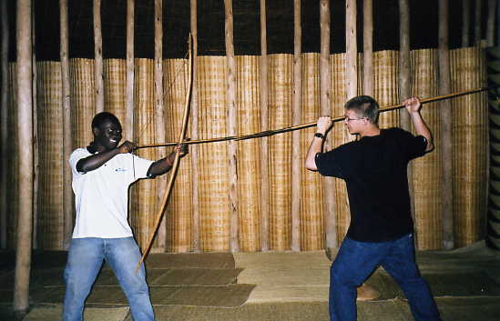 The palace hut at Nyanza is a replica built to 75% the size of the original. A 7-foot-tall king (the height of the last mwami) wouldn't need to stoop to enter.