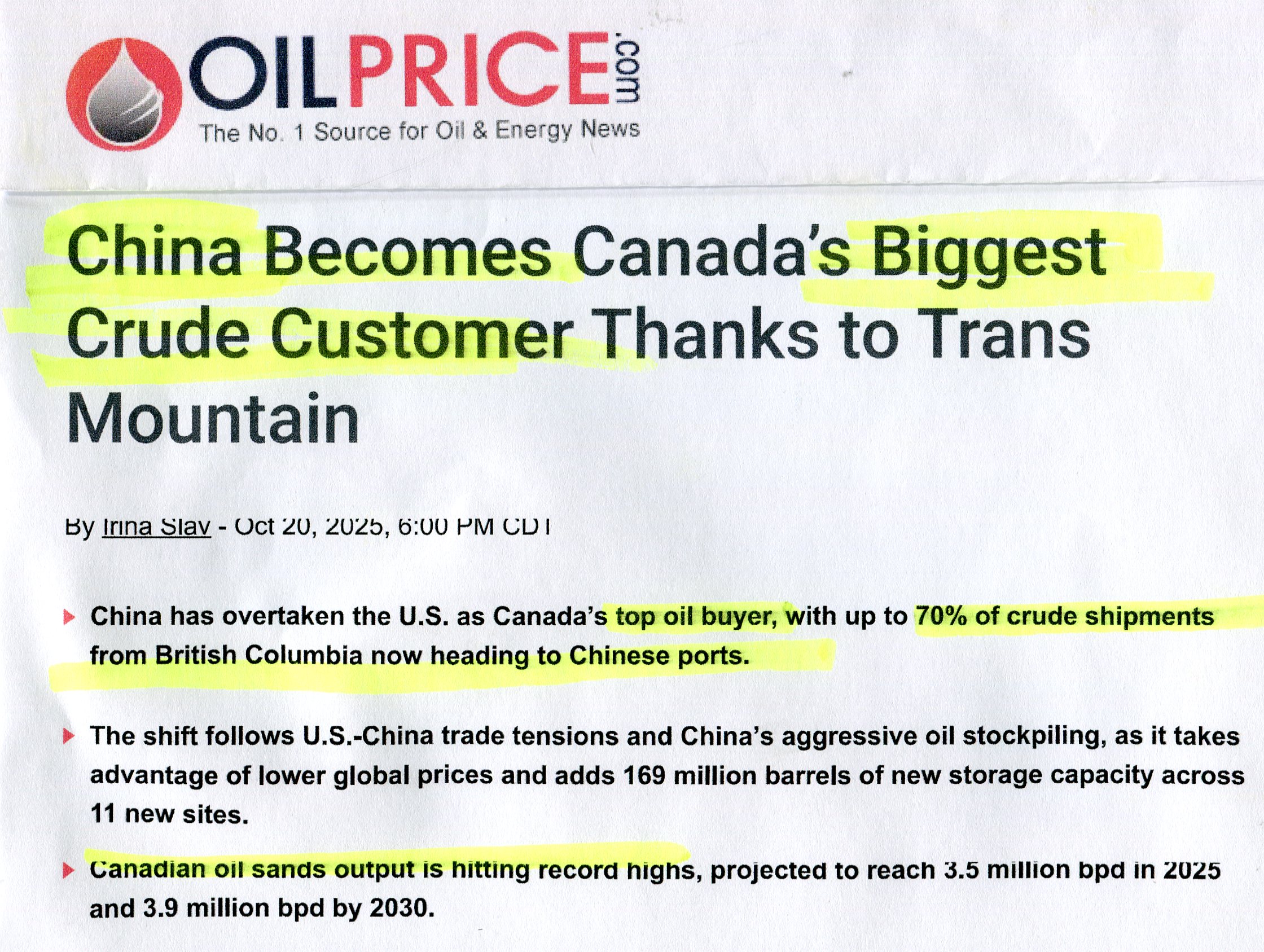 Crude China Gets Canada's Crude Say goodbye USA car market/China EVs coming