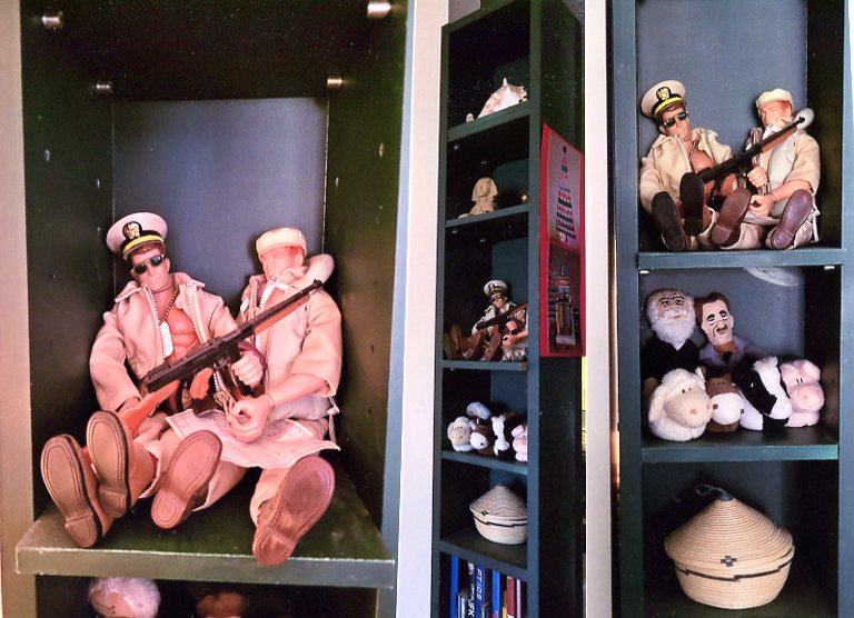 PPS - The other day -- specifically on April 19 -- the day "the first shot was fired" bringing on the War of Independence 250 years ago -- I was taking my JFK-PT-109 GI-JOE off the shelf to show a friend and a coin dropped out and fell to the floor. Upon picking it up it was the JFK silver half-dollar coin a son had given me many years ago, which I'd forgotten about -- and have now scanned below.